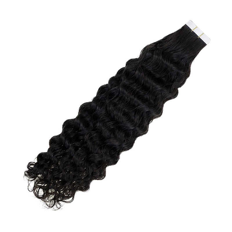 Enhance your curls with Indian Essential Curly Tape-In Extensions, adding volume and definition.